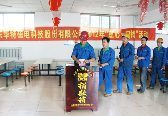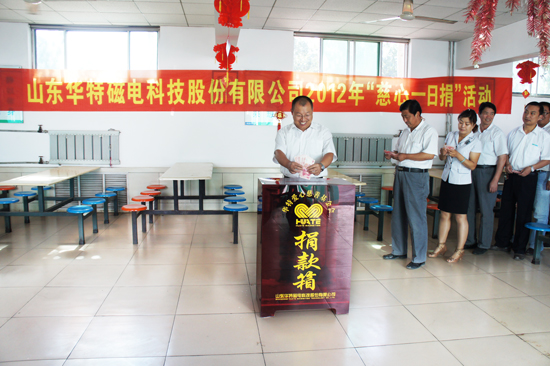 6月11日,公司組織開展了以“攜手慈善、共創(chuàng)和諧”為主題的“慈心一日捐”活動。活動開展現(xiàn)場,公司領(lǐng)導(dǎo)和廣大員工積極響應(yīng),紛紛伸出援助之手,踴躍捐款,展現(xiàn)了華特職工關(guān)愛社會困難群體、主動奉獻愛心的良好精神風(fēng)貌,本次捐款將由城關(guān)街道辦集中上繳臨朐縣慈善總會,全部用于助困、助老、助學(xué)、助殘、助醫(yī)、賑災(zāi)救助及其他慈善公益事業(yè)。