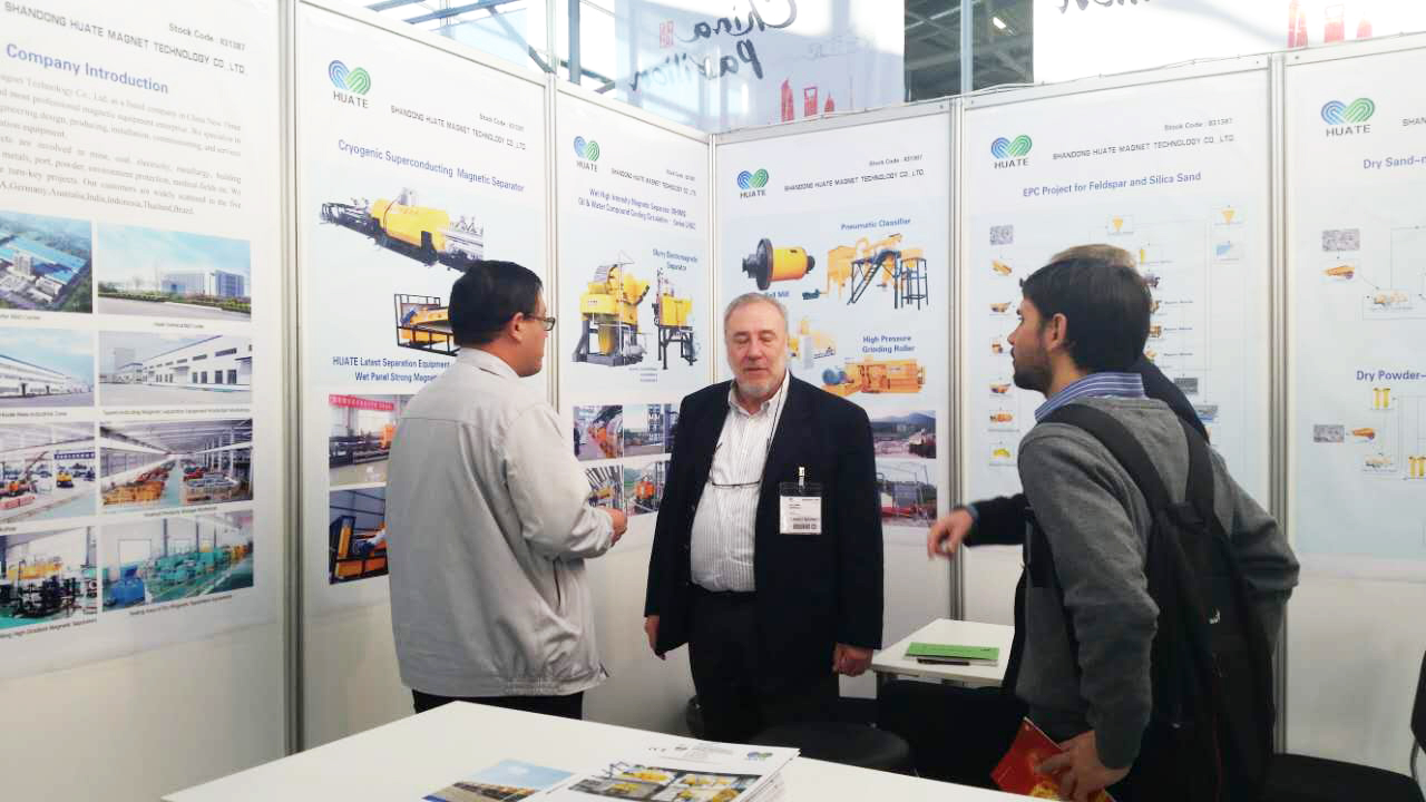 山東華特磁電科技股份有限公司應邀參會。會上,我公司對零揮發5.5T低溫超導磁選機、1.7T蒸發冷卻立環高梯度磁選機、1.4T油水復合冷卻立環高梯度磁選機、濕式電磁漿料高梯度磁選機、板式磁選機、非礦加工生產線等作了大力宣傳。