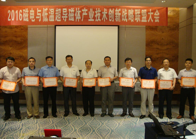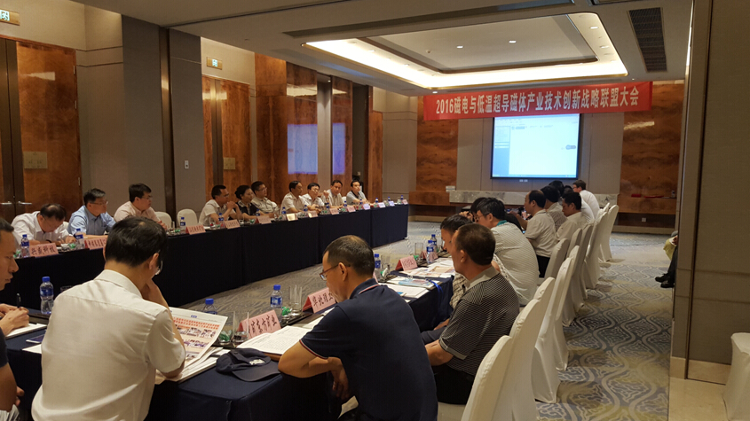 2016年6月22日,“磁電與低溫超導(dǎo)磁體應(yīng)用產(chǎn)業(yè)技術(shù)創(chuàng)新戰(zhàn)略聯(lián)盟”年會在河北唐山香格里拉大酒店隆重召開。本次年會特邀科技部政策法規(guī)司原副司長李新男、中國重機(jī)協(xié)會洗選設(shè)備專委會秘書長呂英凡、酒鋼集團(tuán)選燒廠葉傳勇科長出席,以及來自聯(lián)盟單位的代表共60余人出席會議。會議由聯(lián)盟秘書長、山東華特磁電科技股份有限公司常務(wù)副總劉風(fēng)亮主持。
