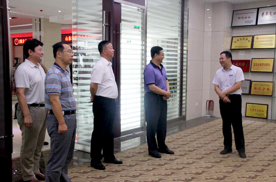 交流會后王總及縣領導陪同尹書記一行參觀了公司的榮譽展室,公司常務副總裁劉風亮向客人介紹了公司的發展歷程、取得的榮譽獎勵及科技創新工作。尹書記對華特取得的榮譽成績表示欽佩,對近年來在山東科技大學設立華特獎學金等促進學校建設發展的支持和幫助表示感謝,并結合山東科技大學現有優勢學科提出了雙方合作的方向,真誠邀請華特加入山東科技大學理事會,共謀雙贏局面。
