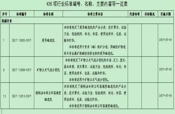 上述行業(yè)標準的制定填補了礦山設(shè)備行業(yè)標準的空白,有利于進一步指導(dǎo)和促進磁選和分級技術(shù)的發(fā)展,促進行業(yè)技術(shù)進步與優(yōu)化升級,推動新技術(shù)、節(jié)能、環(huán)保等戰(zhàn)略新興產(chǎn)業(yè)的培育,為設(shè)計、制造、檢驗及使用等部門提供合理的參數(shù)和有效的技術(shù)依據(jù);有利于幫助企業(yè)提高市場競爭力,促進經(jīng)濟技術(shù)合作和對外貿(mào)易。