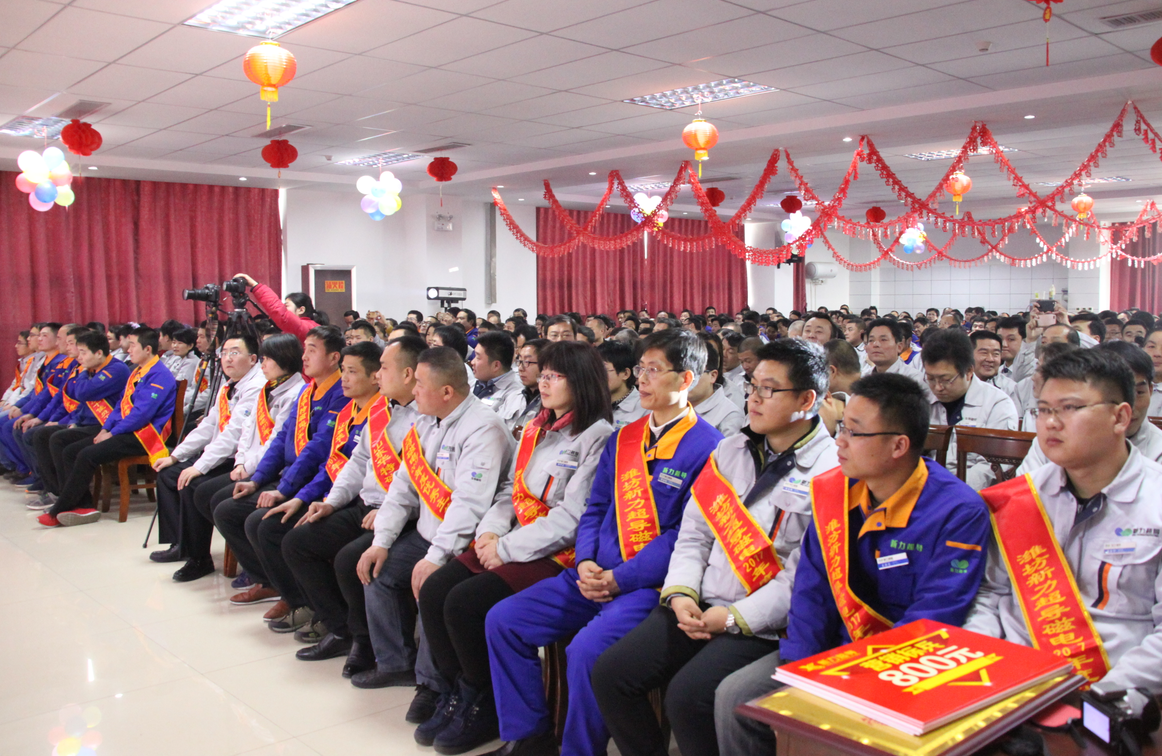 公司董事長兼總裁王兆連、常務副總裁劉風亮、高級副總裁劉梅、副總裁兼質量總監王建波、副總裁兼營銷中心總經理魏黎明、總裁特別助理兼財務總監孟昭剛、公司總工程師賈洪利、總裁特別助理兼工會主席王學軍、總裁特別助理兼生產中心總經理劉西軍、采購總監兼物資供應部經理王其軍及濰坊新力超導磁電科技有限公司常務副總李培勇、黨支部書記王建功在前排就座,公司全體員工齊聚一堂,共度歡樂時刻。