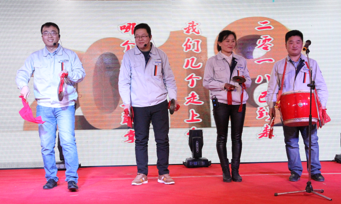 歌曲《父親》,在歌手劉光瑞真情演唱中,讓我們想起了家中的父母。他們是我們面對坎坷時的堅強后盾, 接下來演出的是營銷中心員工組織的朗誦《華特頌》。伴隨著背景圖片的播放,2017年公司大事記如同一幅燦爛輝煌的畫卷在陣陣朗讀聲中緩緩打開。由公司總工程師賈洪利、副總王學軍、生產中心總經理劉西軍、物資供應部經理王其軍抽取第一組三等獎24名,獎品為足浴盆1件。技術中心員工家屬演唱了歌曲臨朐版《成都》。這首旋律悠閑、輕慢的歌曲,讓觀眾們忘卻了生活中的煩惱,默默感受臨朐的變遷。小品《最強大腦》,在技術中心員工的演繹下,風趣幽默的臺詞、別出心裁的搞笑段子,讓整個會場變成了歡樂的海洋。