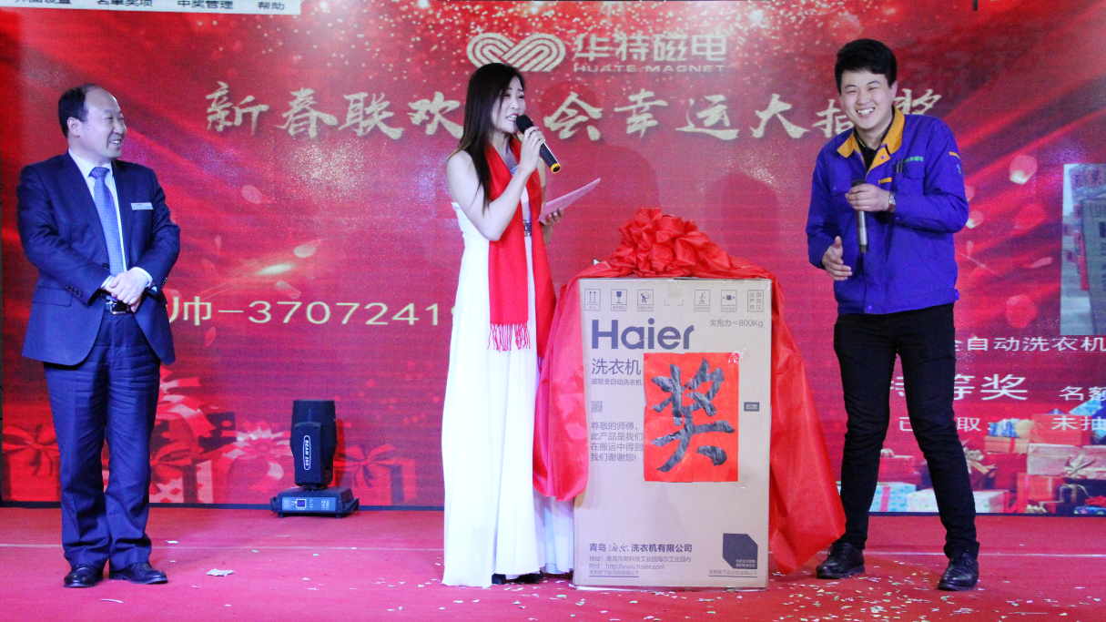 接下來,王董事長抽取本次活動精心準備的特等獎,海爾全自動洗衣機一臺。