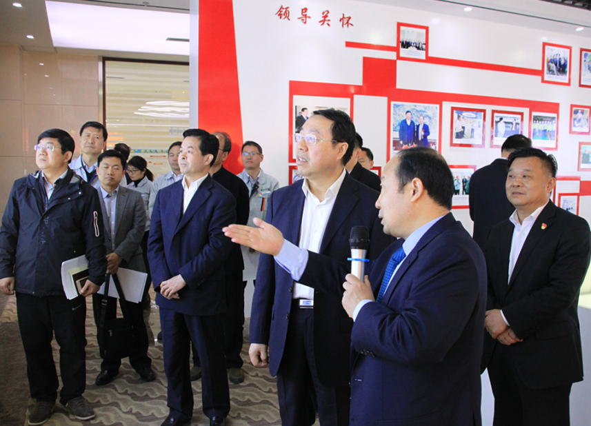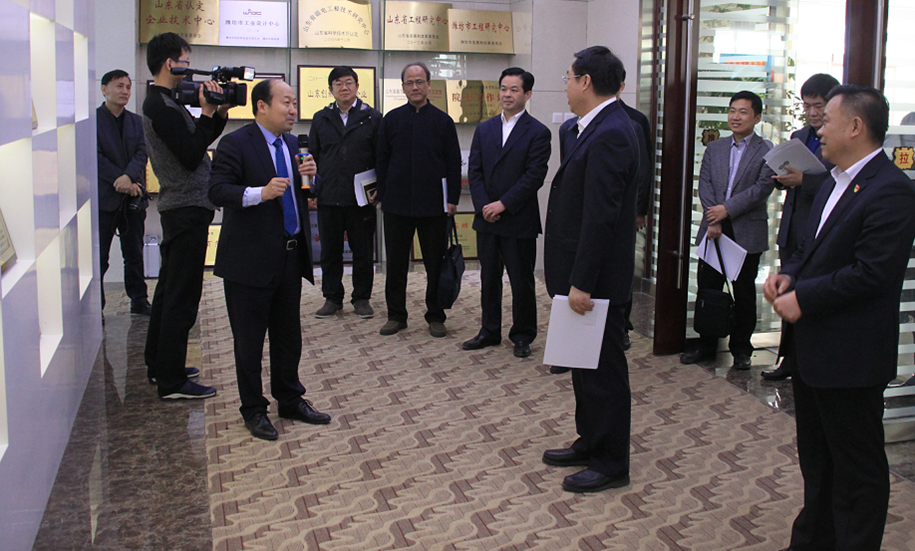 王兆連董事長帶領各位領導參觀了公司的榮譽展廳,詳細介紹了公司發展歷程、歷年來獲得的主要榮譽以及近幾年來公司在產學研合作及新產品研發方面的成果。