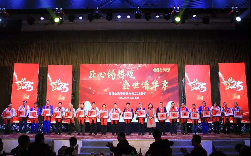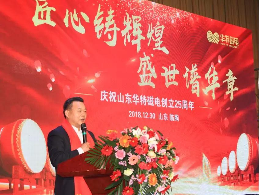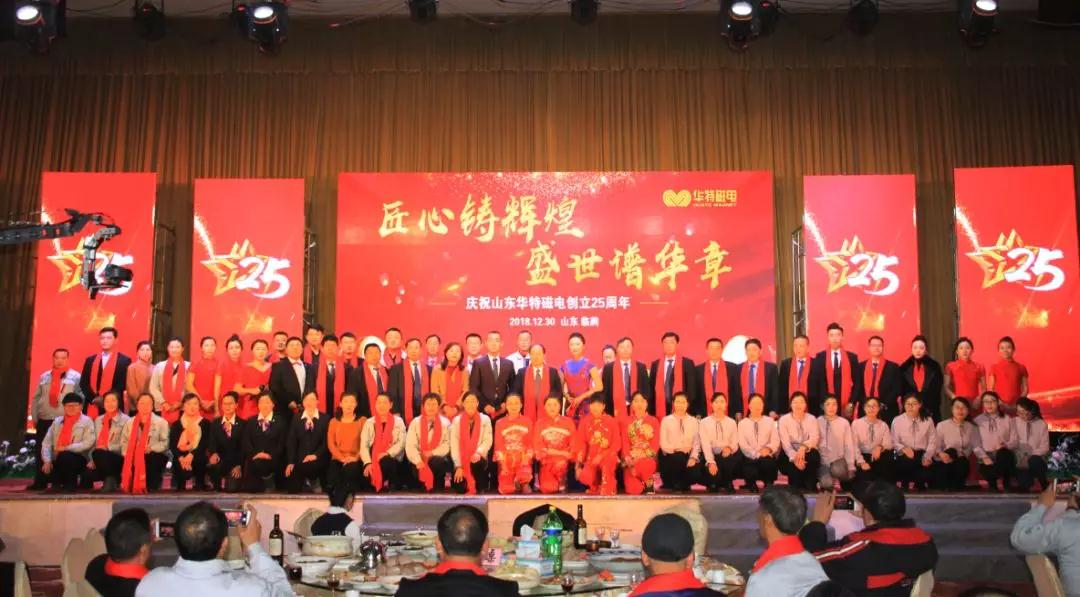 12月30日上午,山東華特磁電科技股份有限公司迎來了建企二十五周年慶典,臨朐經(jīng)濟(jì)開發(fā)區(qū)管委會主任、城關(guān)街道黨工委書記白文玉,經(jīng)濟(jì)開發(fā)區(qū)管委會副主任、街道黨工委委員尹德忠,華特公司董事長兼總裁王兆連、常務(wù)副總裁劉風(fēng)亮、高級副總裁劉梅等領(lǐng)導(dǎo)與全體員工相聚臨朐攬翠湖溫泉度假村,一起回顧二十五年風(fēng)雨征程,共同感受二十五載創(chuàng)業(yè)輝煌。