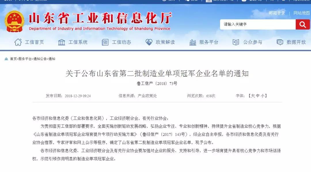 為貫徹落實工信部的部署要求,全面實施創(chuàng)新驅(qū)動發(fā)展戰(zhàn)略,弘揚企業(yè)專注、專業(yè)和創(chuàng)新精神,持續(xù)提升全省制造業(yè)核心競爭力,根據(jù)《山東省制造業(yè)單項冠軍企業(yè)培育提升專項行動實施方案》(魯經(jīng)信產(chǎn)〔2017〕143號),經(jīng)企業(yè)自主申報,各市經(jīng)濟和信息化委及有關(guān)行業(yè)協(xié)會推薦,專家評審和網(wǎng)上公示等程序,確定了山東省第二批制造業(yè)單項冠軍企業(yè)名單,山東華特磁電科技股份有限公司成功入選。