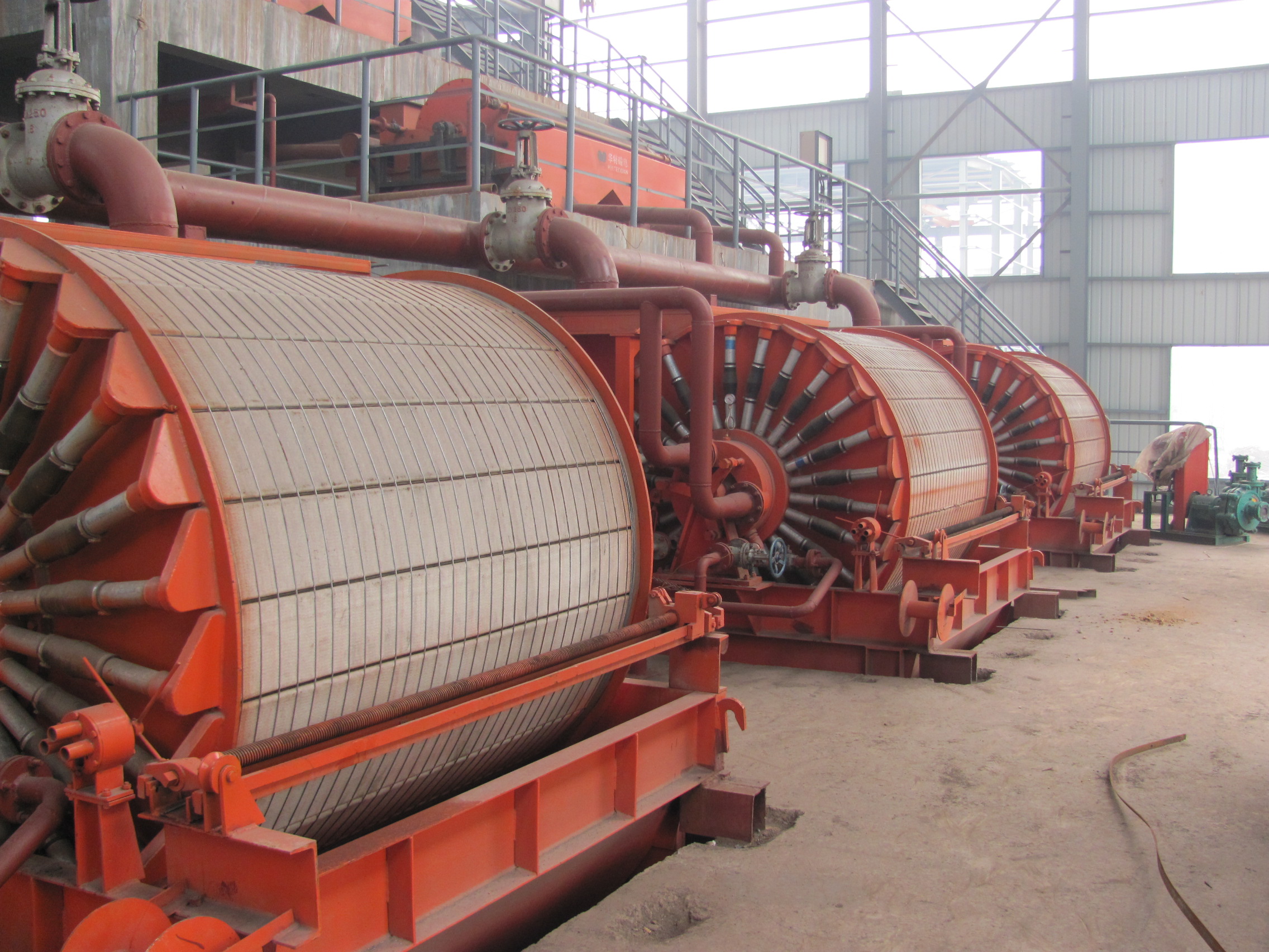 ◆當圓筒的轉入脫水區時,濾餅中的殘存水分透過濾布并經過濾室和分配頭上的兩個真空管路抽出,濾餅含水率低。