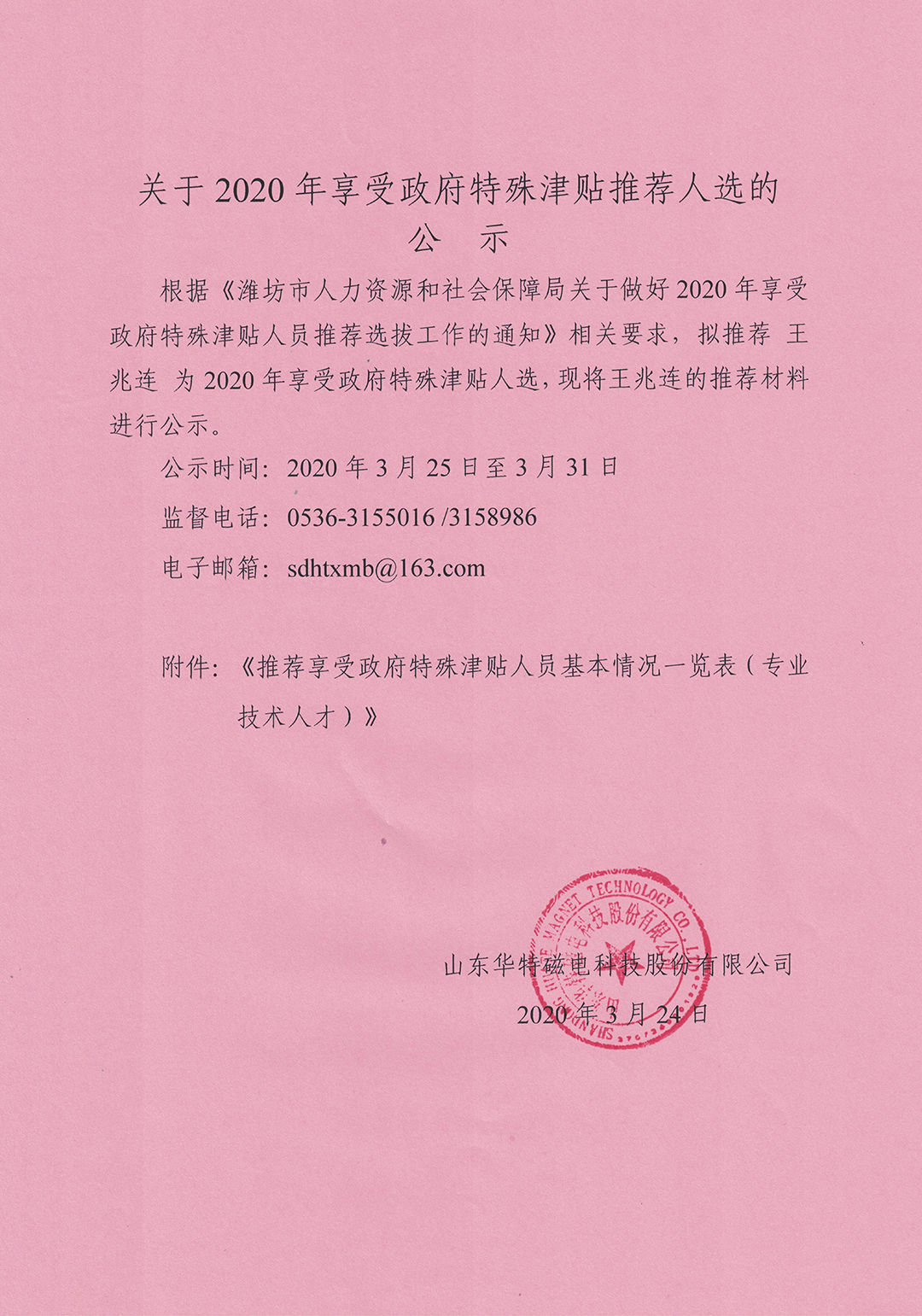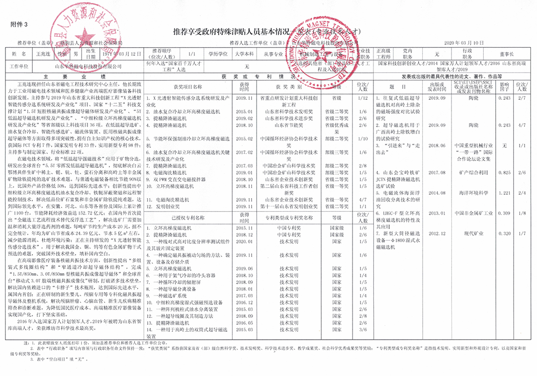 關于2020年享受政府特殊津貼推薦人選的公示