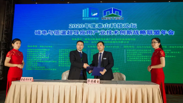 11月21日,2020年度第25期泰山科技論壇暨磁電與低溫超導(dǎo)應(yīng)用產(chǎn)業(yè)技術(shù)創(chuàng)新戰(zhàn)略聯(lián)盟十周年年會,在山東臨朐金成大酒店勝利召開。此次論壇和聯(lián)盟大會舉辦,旨在促進各聯(lián)盟成員產(chǎn)學(xué)研用合作和國內(nèi)外磁電新技術(shù)、新裝備、新工藝等進行學(xué)術(shù)交流,推動和加快我省制造業(yè)實現(xiàn)新舊動能轉(zhuǎn)換和產(chǎn)業(yè)轉(zhuǎn)型升級,對我國科學(xué)技術(shù)和經(jīng)濟社會發(fā)展提供決策和智力支持。